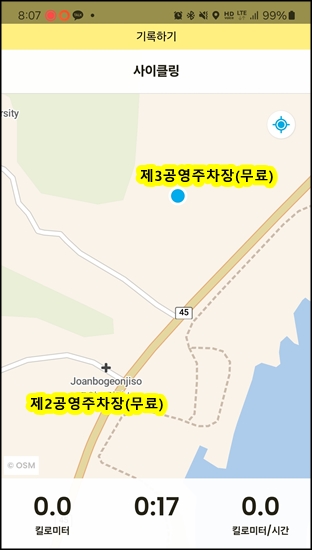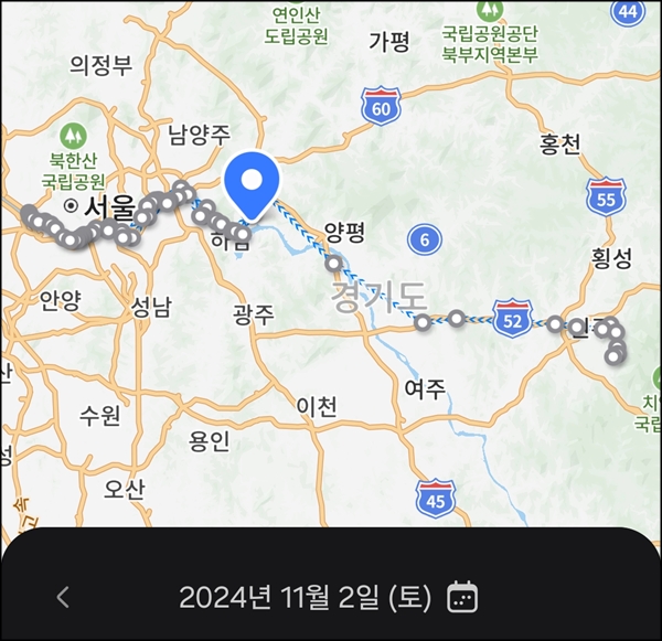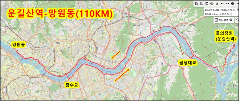 3. 조안IC로 빠져서 물의정원 공용주차장에 주차. 망원동까지 편도 110km