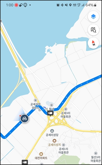 다시 돌아갈까 하다가 재미가 없으니까 계획코스로 라이딩하기로 결정