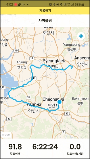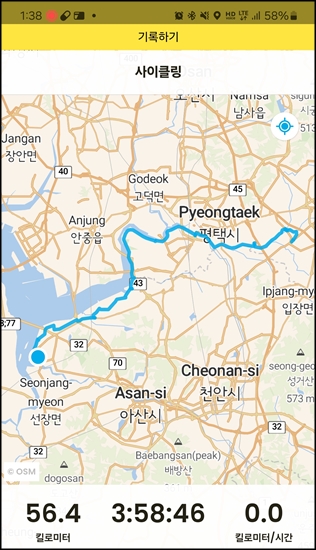 4시간 달려서 56km 왔다.