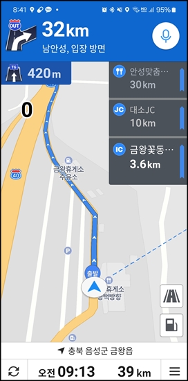 금왕휴게소에서 밥먹고 나니 8시 40분