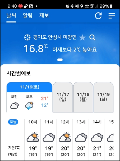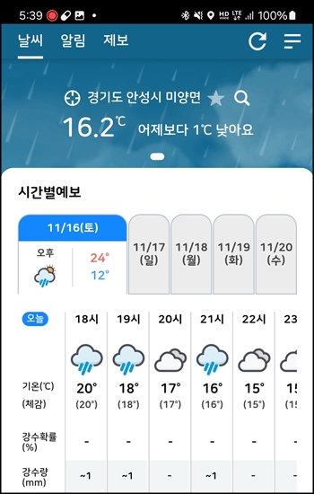 오후 4시부터 비예보