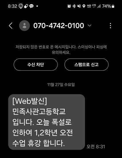 23년 근무하면서 눈때문에 휴강하기는 처음