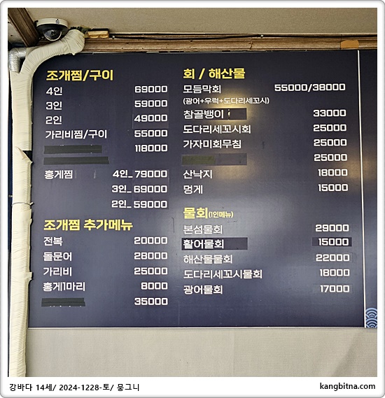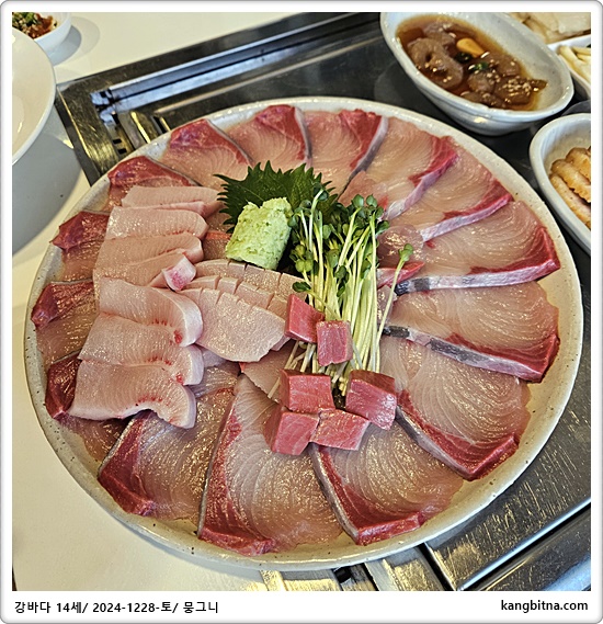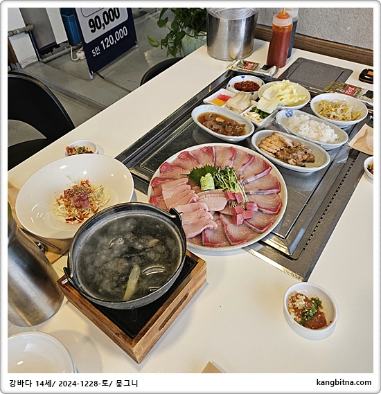 생일파티 메뉴는 대방어와 조개찜
