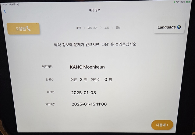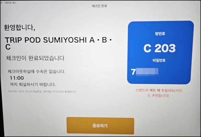 미리 숙박세를 내었으면 5분 정도 걸려서 체크인 가능