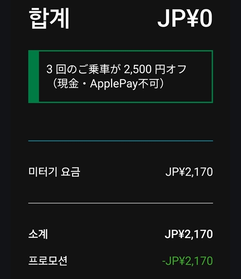 솔트래블 카드에도 0엔 결재되었다고 카톡으로 알려줌.