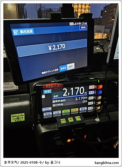 숙소까지 택시비가 2천엔 정도 나온다고 해서 택시탈 작정함.