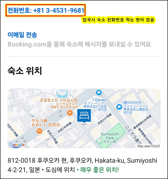 일본 입국카드에 슋호 전화번호와 주소 적어야 함.