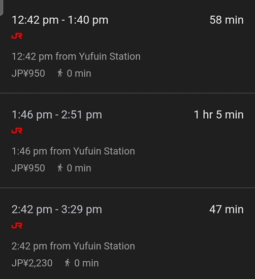 14:42 유후모노리는 벳푸까지 바로가지만 예약을 해야한다.