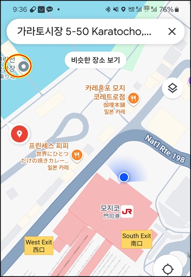 그리고 모지코역 선착장과 가라토시장 선착장 사이를