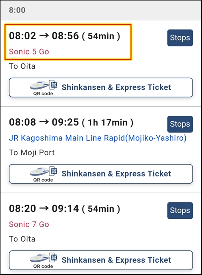 7번에서 내리면 8번에서 바로 모지코행 일반 열차를 탈 수 있다.
