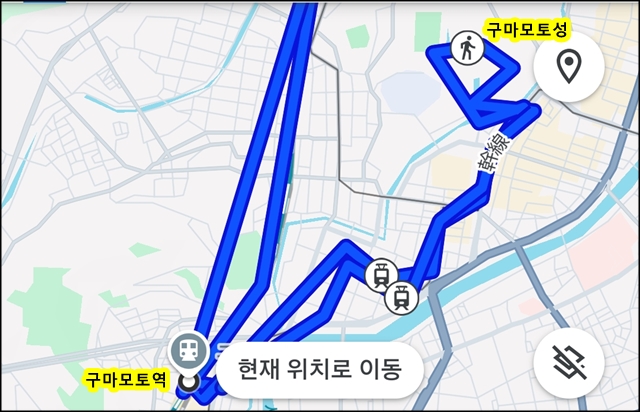 구마모토성으로 올라가는 무료 셔틀 탑승