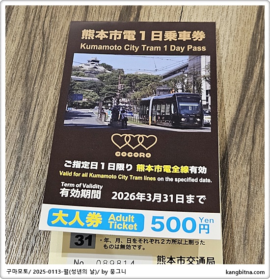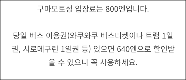 하지만 트램 1일권이 있으면 구마모토성 20%할인하여 640앤. 1040엔으로 160엔 이득이다.