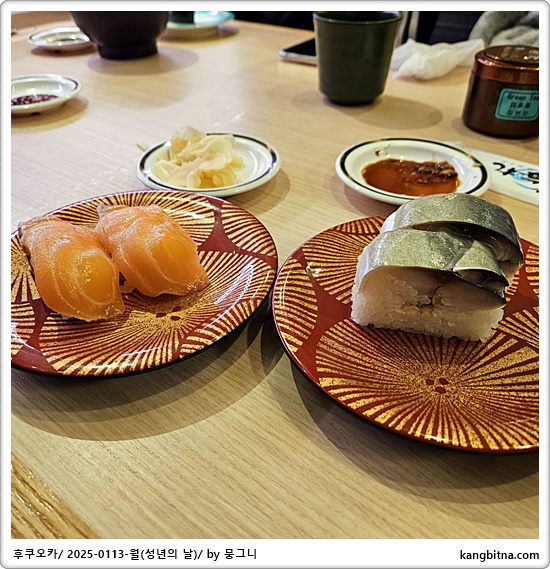 접시색깔이 다른 고등어초밥