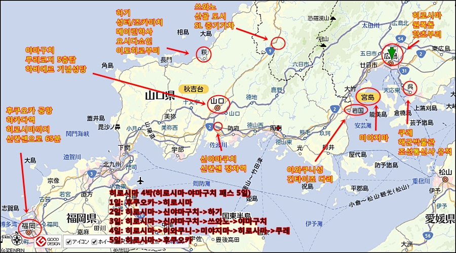 2018년 1월 히로시마-야마구치 패스로 두 지역 여행