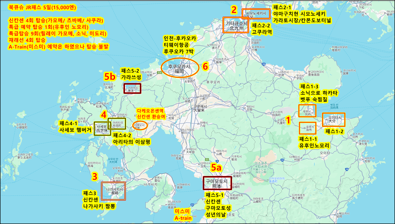 2일~5일 패스 5일 사용하여 아래 지역을 다닐 것으로 계획을 짰다.