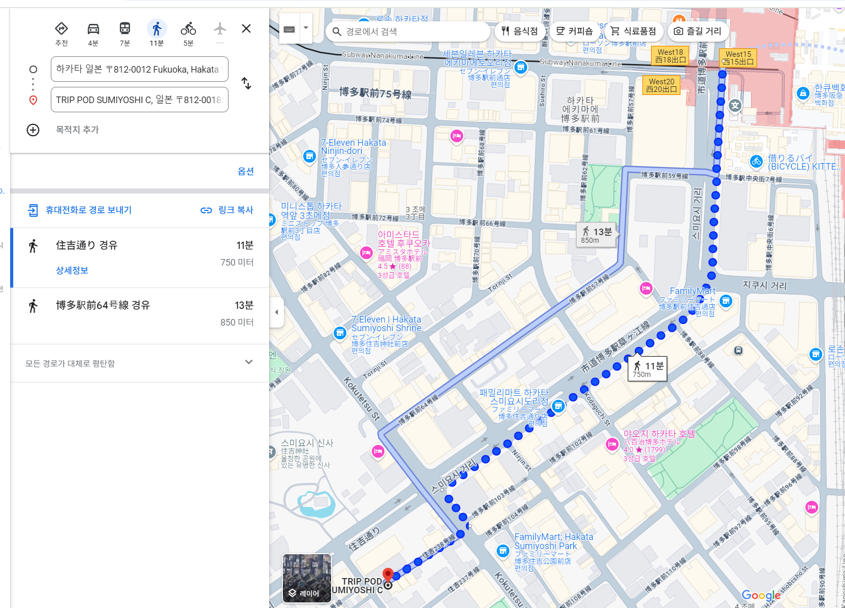 하지만 더 먼 인천-후쿠오카의 티웨이 항공이 더 저렴했기 때문에 인천을 선택했다.