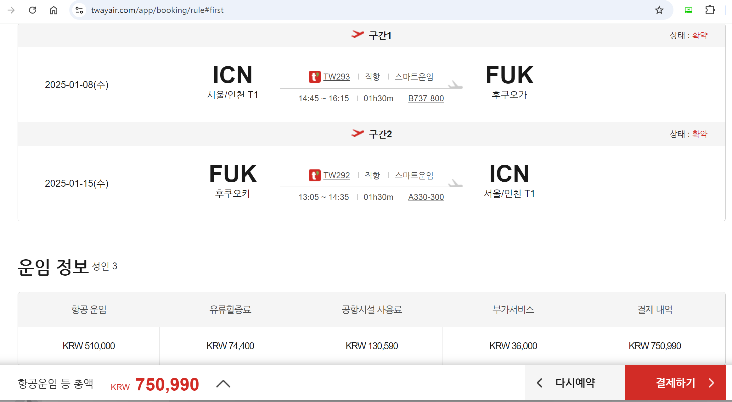 인천-후쿠오카 티웨이 항공은 하루에 여러편이 있으므로 이점도 잘 살피면 좋을 것 같다.