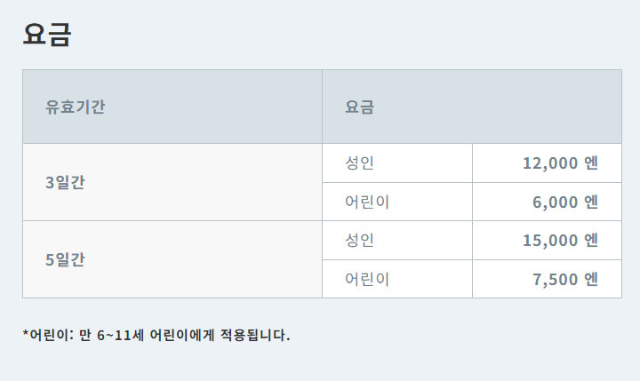3일권과 5일권이 있다. 이번엔 5일권 사용