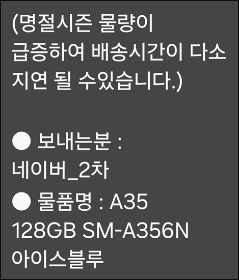 번개처럼 배송되었다.
