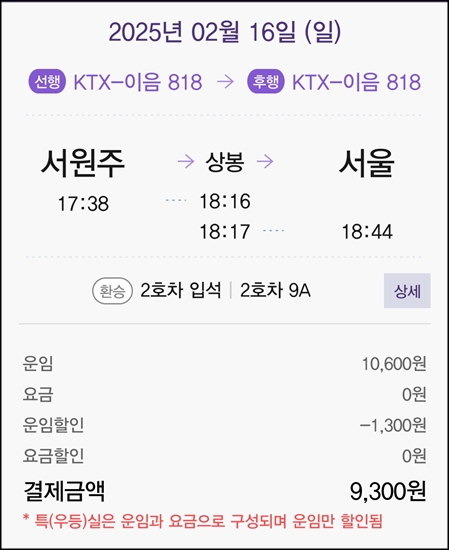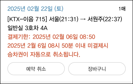 2월 15일 대기 풀려서 서원주역-서울역 앉아서 갈 수 있게 되었다.