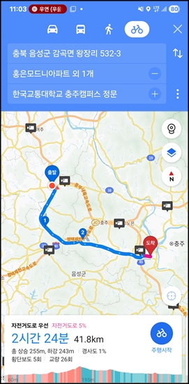 감곡에서 교통대까지 가는 코스 카카오맵에 입력