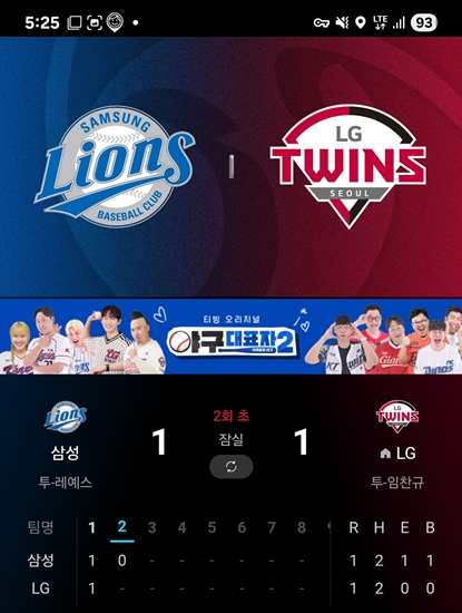LG는 패배... 삼성에게 스위당함. 삼성 7연승...