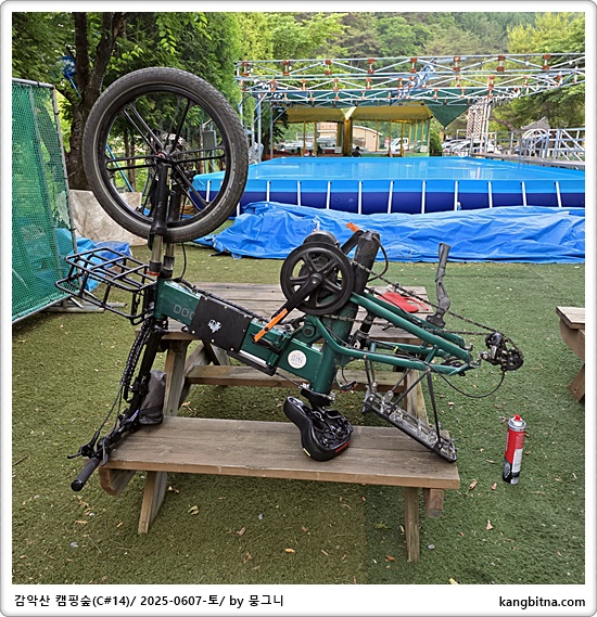 앞바구니 설치하고, 스페어배터리를 뒤에 묶음