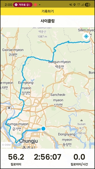 봉양에서 비끼재까지 배터리 칸이 남아 있지 않은 상태에서
