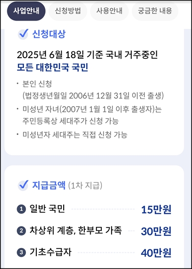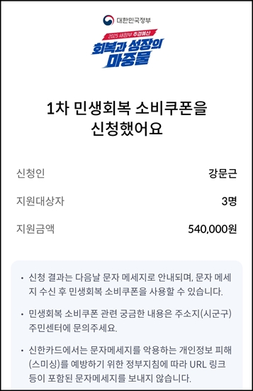 끝자리가 5와 0인 사람들 민생회복 소비쿠폰 오늘부터 신청 가능