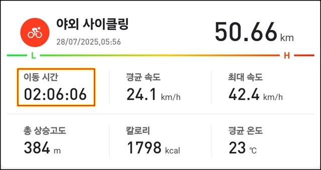 라이딩 시간 2시간 6분