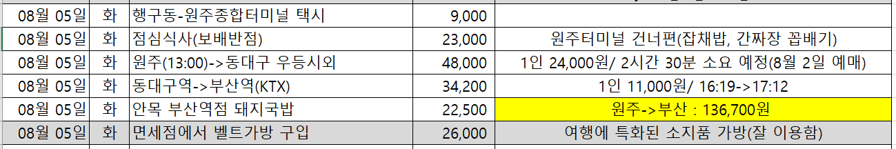 부산역까지 오는데 두명이서 136,700원이 들었다.