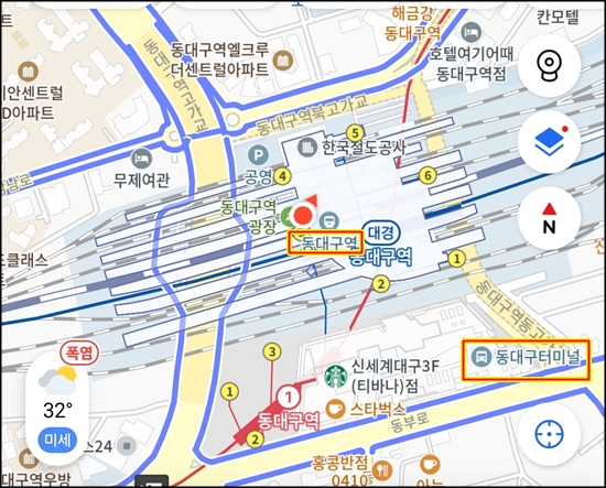 동대구터미널에서 동대구역은 바로 붙어 있다.