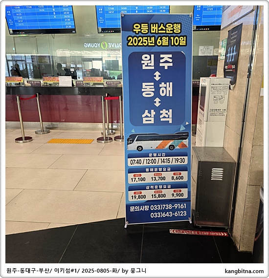 원주에서 동해, 삼척 우등버스가 운행한다.