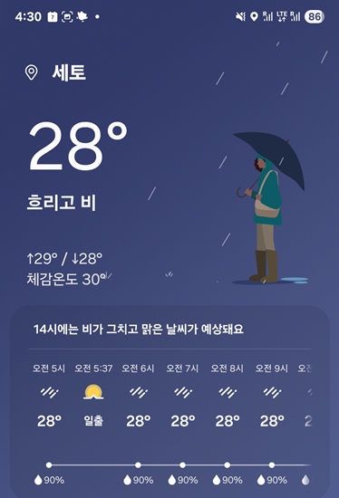 24시간 스쿠터 빌려서 겨우 6시간 정도 이용했는데 비가 온다.