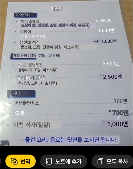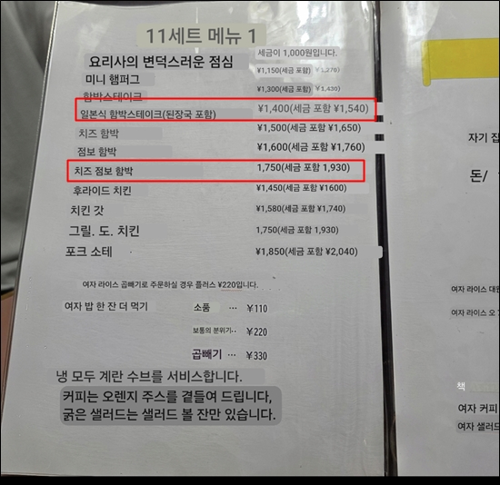 오징어 덮밥, 전쟁이 튀김, 미소시루 끝...
