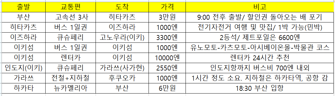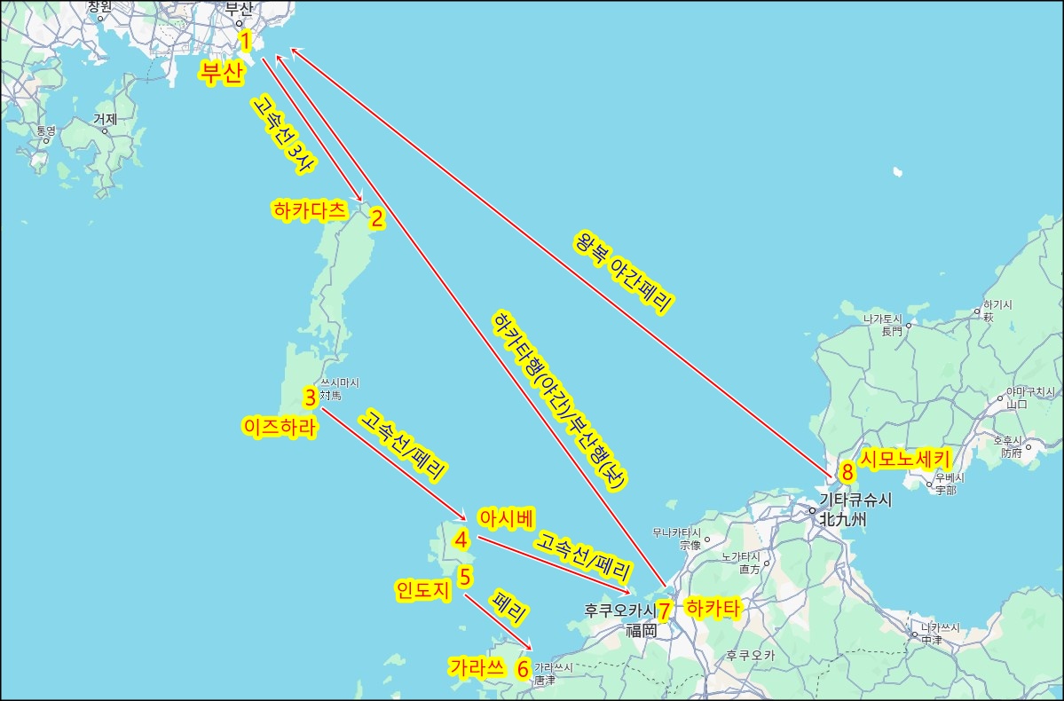 다음엔 부산-하카타츠-이즈하라-아시베-인도지-가라쓰-후쿠오카 코스로 한 번 가봐야겠다.
