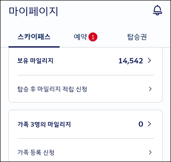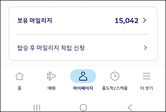 500마일만 더 있으면 편도는 마일리지로 끊을 수 있다. 15,000마일 + 5만원 정도되니