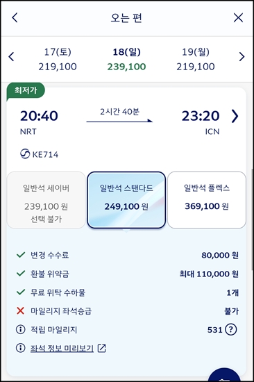 출발 날짜가 가까워지면 항공권이 상승하는 시스템인 듯....