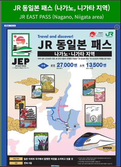 두 가지 종류의 5일짜리 동일본 철도패스가 있고