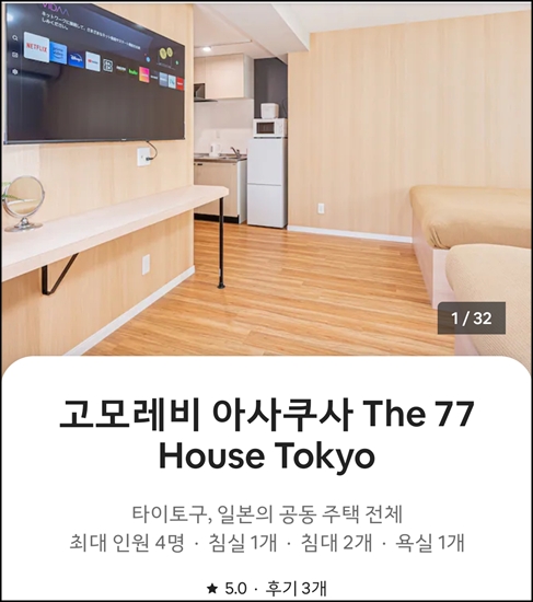 넓은 다다미방에서 이불깔고 자는 에어비앤비로 예약
