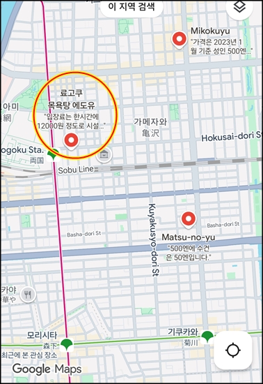 일단 숙소 근처 목욕탕 검색