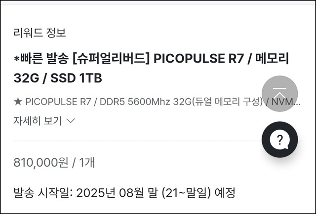 8월 30일 주문하고 결제했던 R7