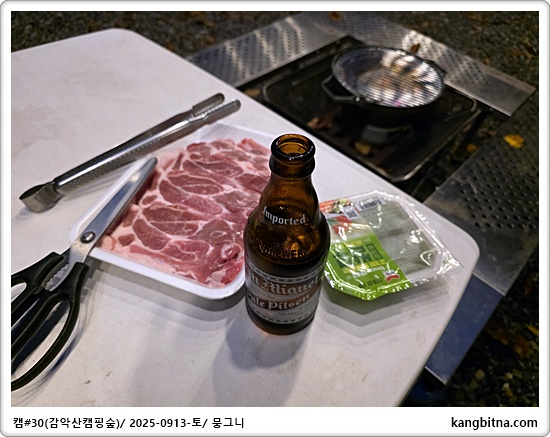 고기구워 먹고 텐트 들어가서 누우니 비내리기 시작