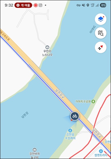 뇌곡교까지 남쪽으로 좀 더 내려갔다가 올라왔다.