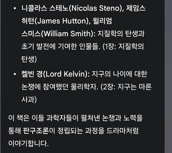 제미나이에게 주요 과학자들을 정리해 달라고 했더니