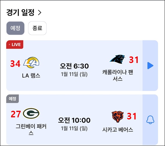 6시 20분부터 NFL 플레이오프 경기 중계