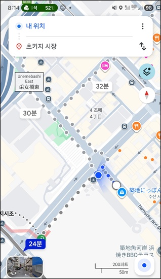 츠키지시조역에 내려서 5분 정도 걸어가면 츠키시 시장이다.