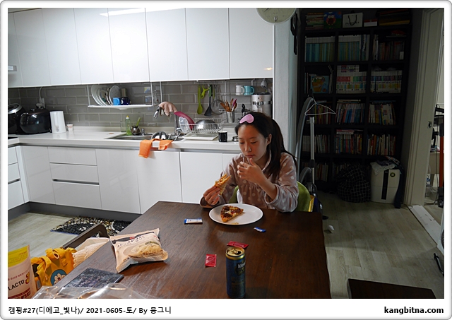 닭강정 먹고, 빛나와 아빠 캠핑장으로...