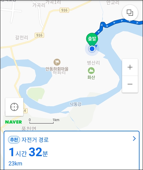 이후 하회마을 근처까지 50km 식당 및 매점 없음