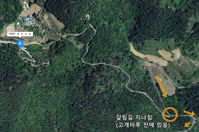 고개마루 전에 다불암 가는 갈림길을 놓침.